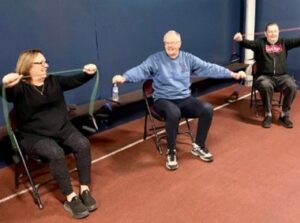 * Stretching included at the end of every class, monthly blood pressures (or as needed), bi-monthly fitness assessments (6 min walk tests and timed up and go testing)